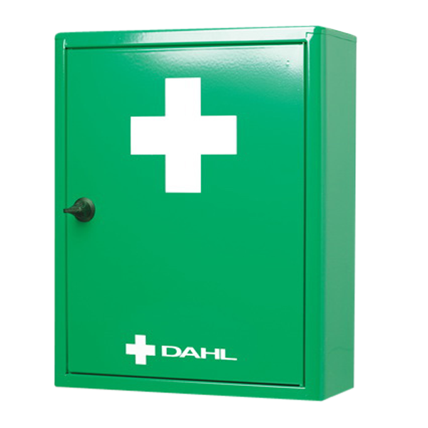 Dahl Förbandsskåp i plåt är ett robust och oerhört komplett Första hjälpen-skåp. Innehåller det som behövs vid akuta olycksfall samt daglig förbrukning.